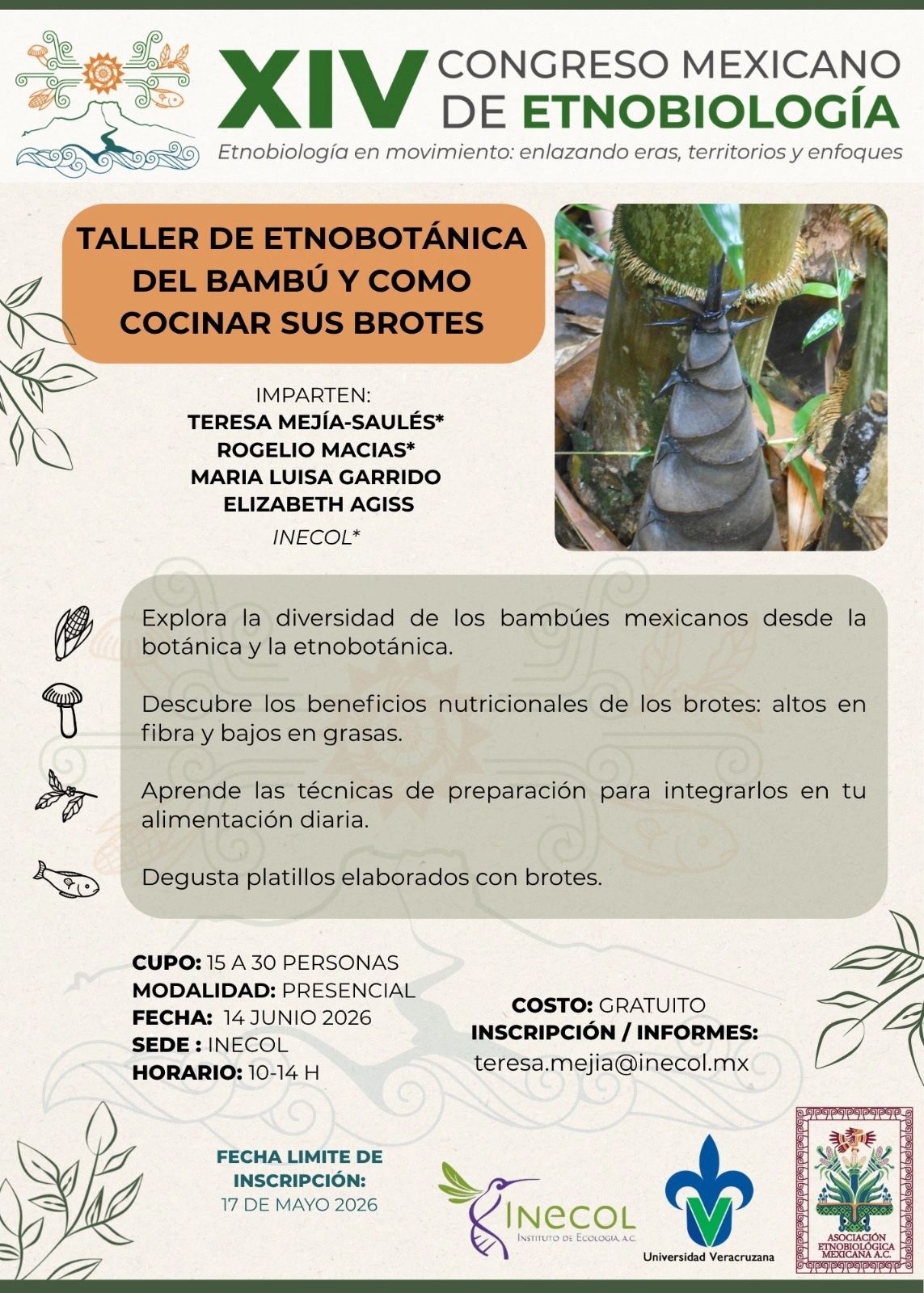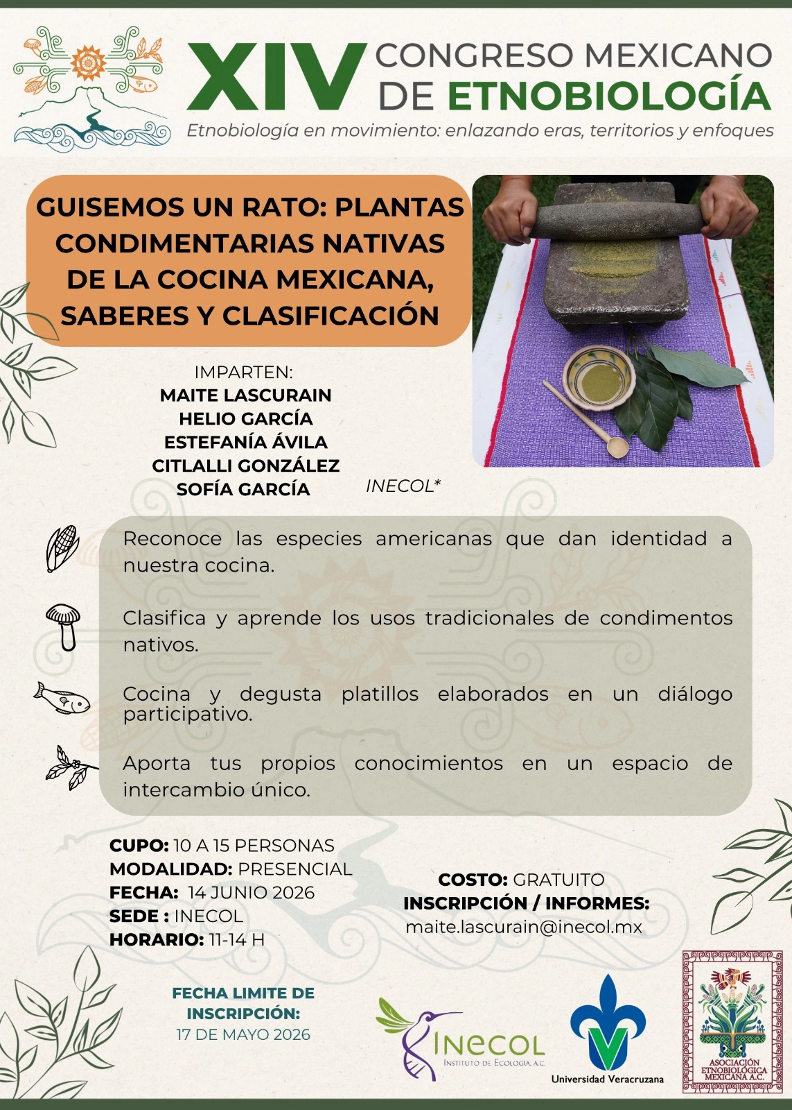 Por lo anterior, desde el Comité de Organización Local del XIII CME queremos expresar nuestro interés porque asista el mayor número de personas posible, de ahí que todos los trabajos sometidos serán aceptados, siempre y cuando aborden una temática etnobiológica en el sentido amplio del término.